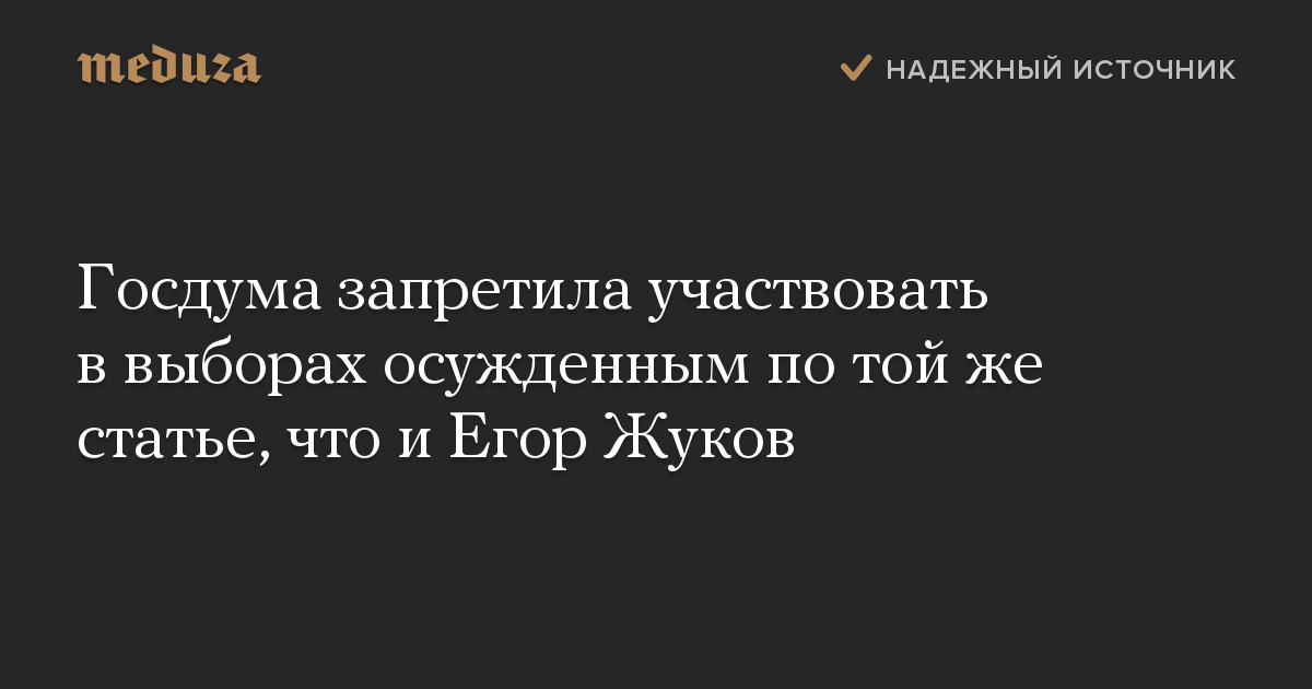Госдума запретила участвовать в выборах осужденным по той же статье, что и Егор Жуков