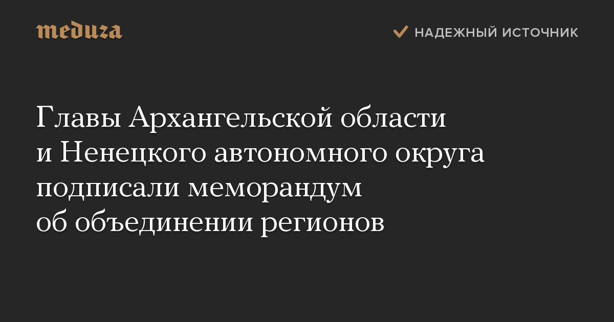Главы Архангельской области и Ненецкого автономного округа подписали меморандум об объединении регионов