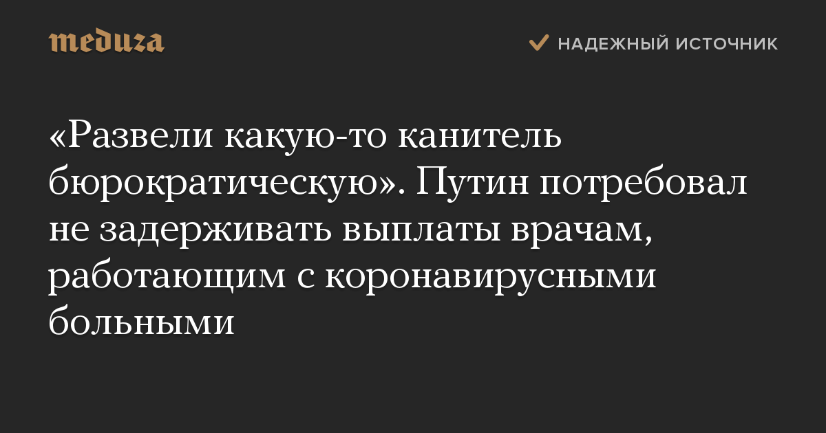 «Развели какую-то канитель бюрократическую». Путин потребовал не задерживать выплаты врачам, работающим с коронавирусными больными