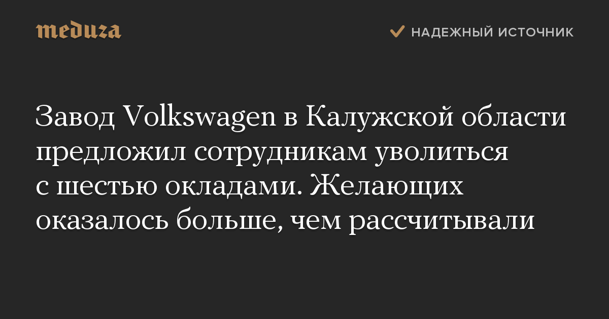 Завод Volkswagen в Калужской области предложил сотрудникам уволиться с шестью окладами. Желающих оказалось больше, чем рассчитывали