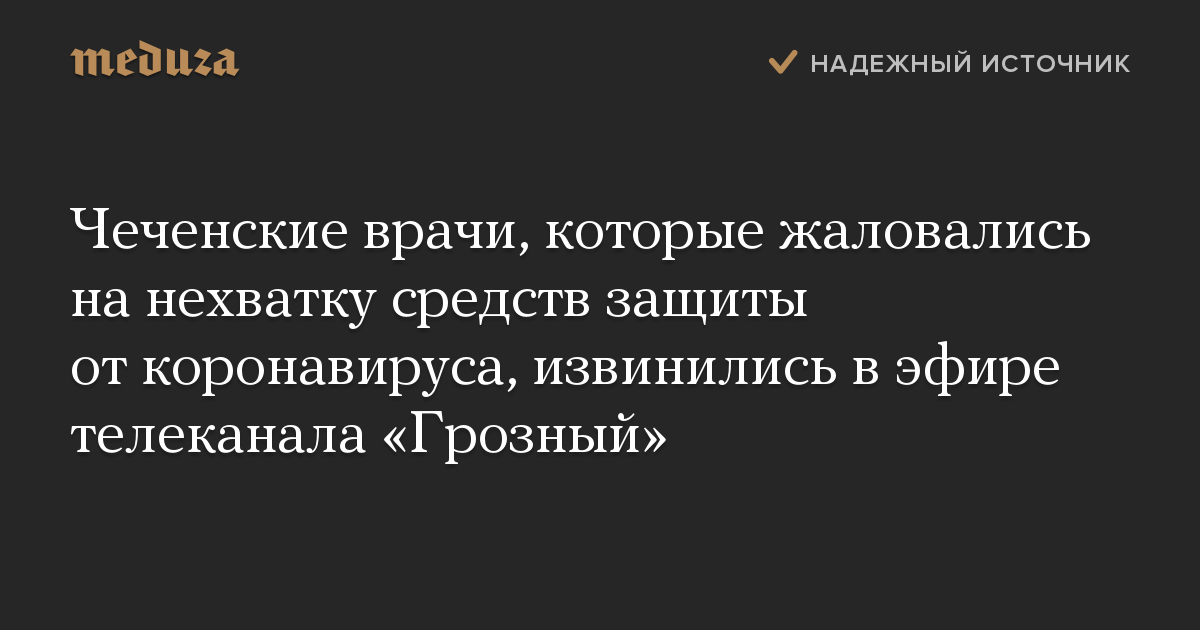Чеченские врачи, которые жаловались на нехватку средств защиты от коронавируса, извинились в эфире телеканала «Грозный»
