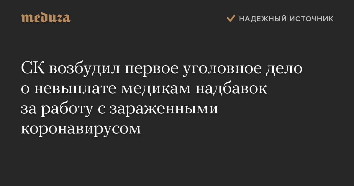 Как отмечает «Интерфакс», это первое в России уголовное дело о невыплате медикам надбавок за работу с больными COVID-19.