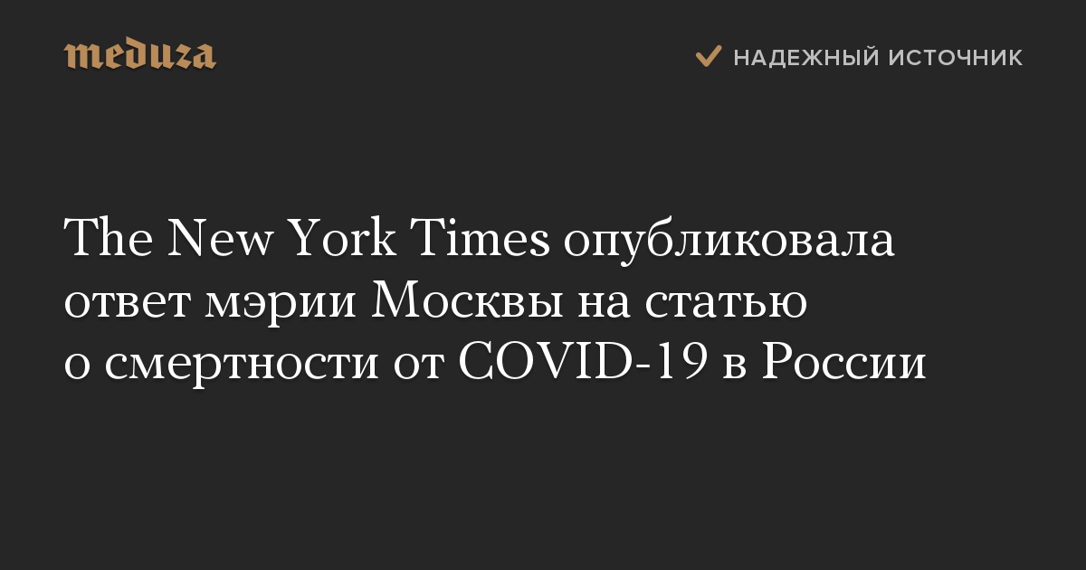 The New York Times опубликовала ответ мэрии Москвы на статью о смертности от COVID-19 в России