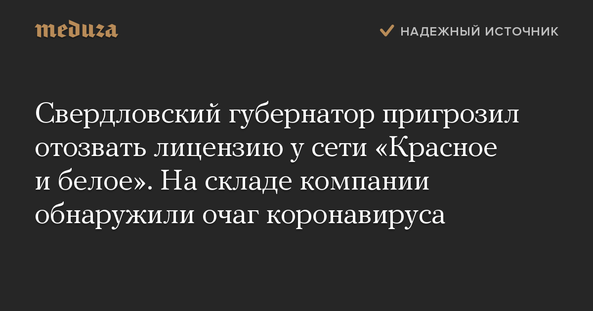 Свердловский губернатор пригрозил отозвать лицензию у сети «Красное и белое». На складе компании обнаружили очаг коронавируса