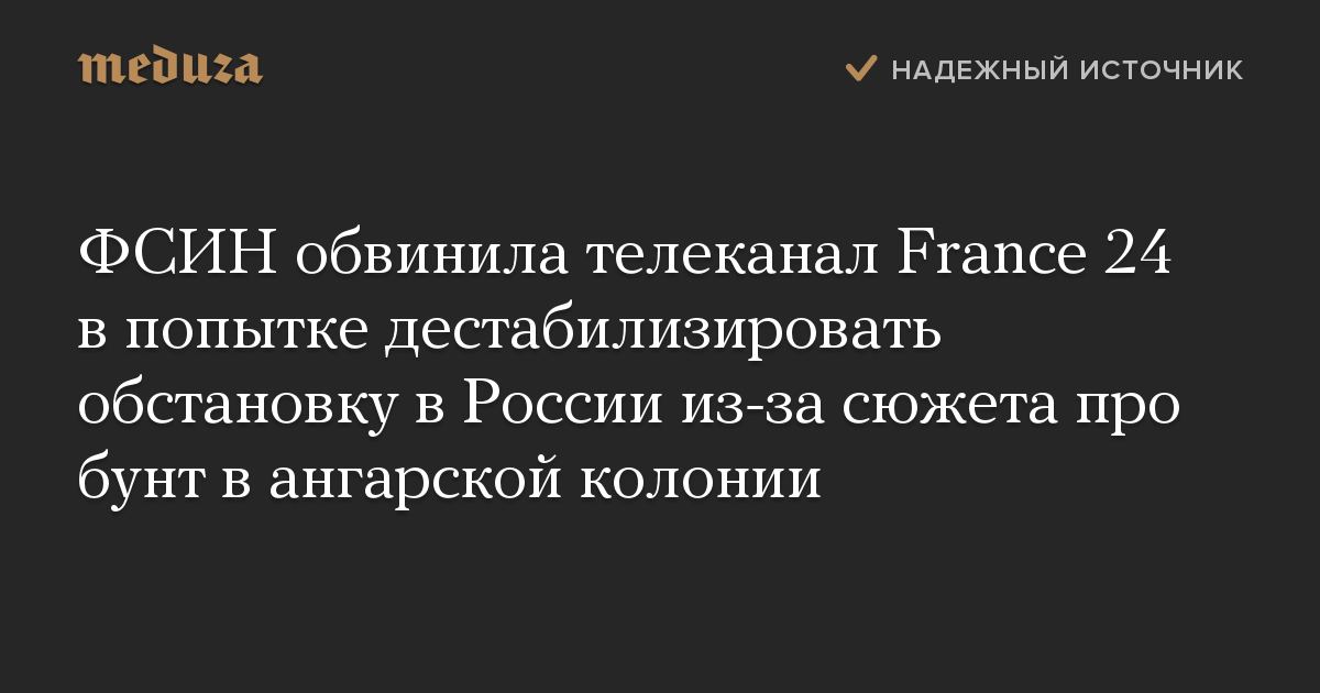 ФСИН обвинила телеканал France 24 в попытке дестабилизировать обстановку в России из-за сюжета про бунт в ангарской колонии