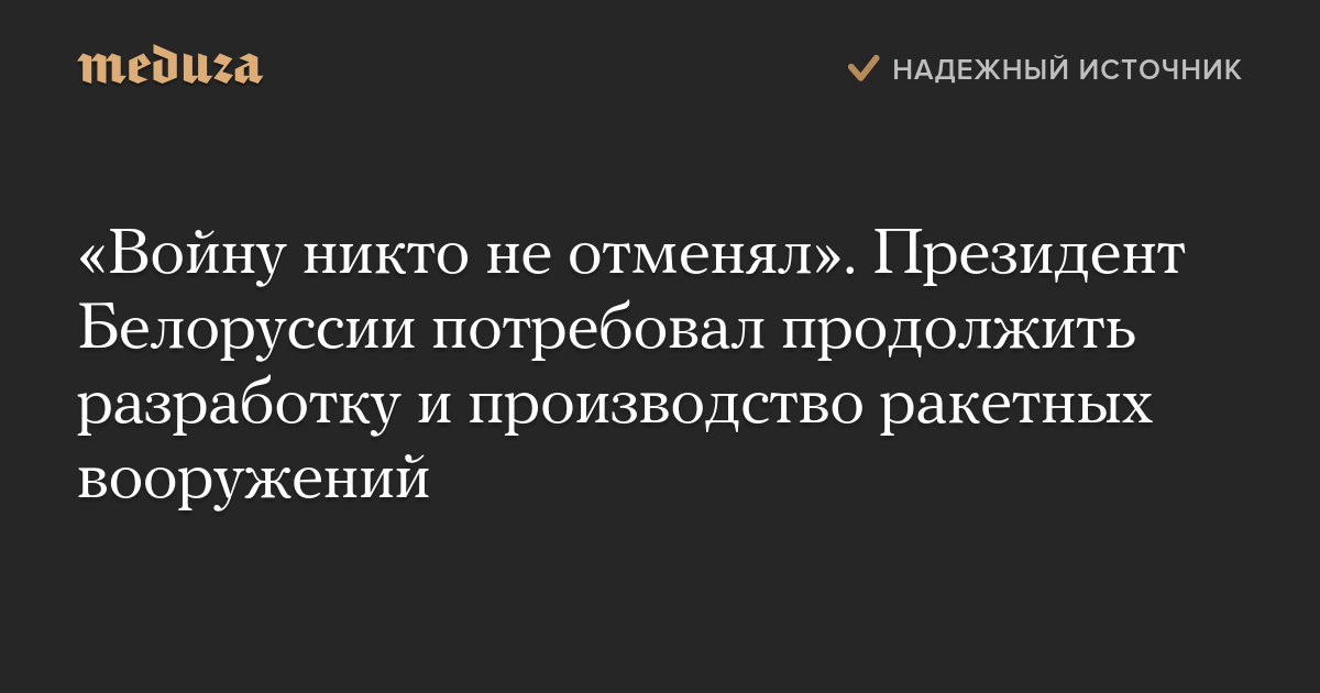 «Войну никто не отменял». Президент Белоруссии потребовал продолжить разработку и производство ракетных вооружений