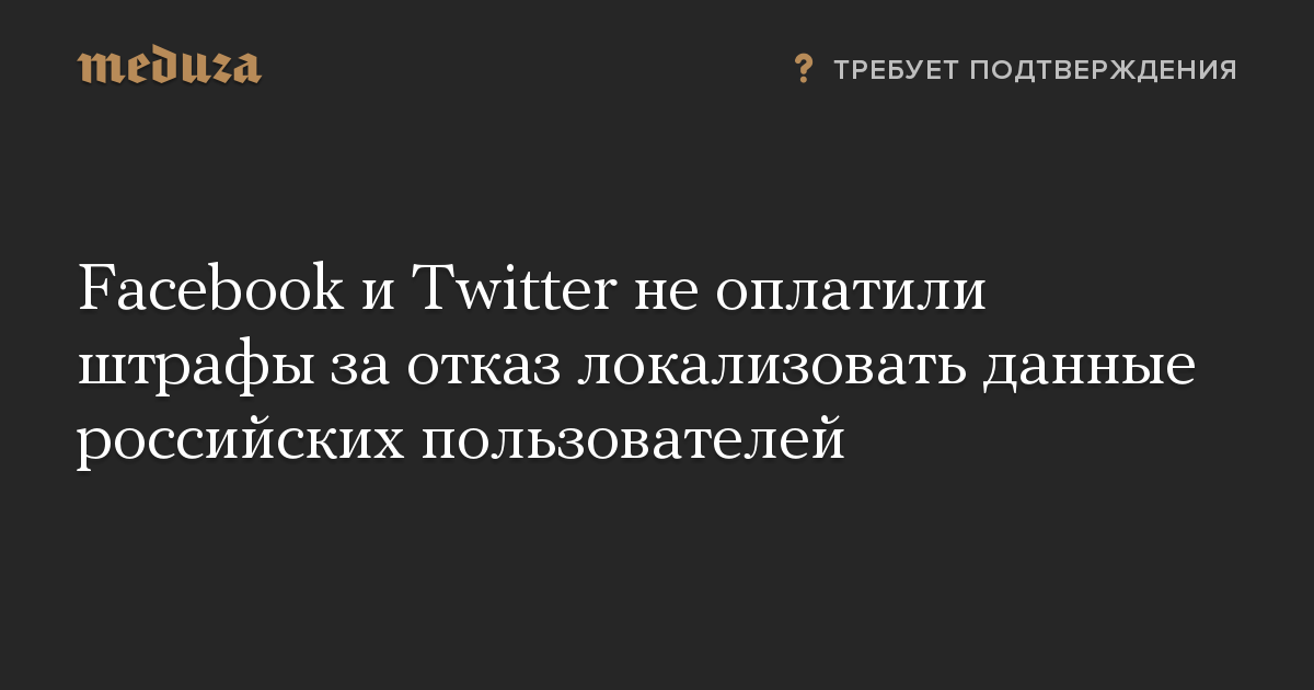 Компании Facebook и Twitter не исполнили решение суда, оштрафовавшего каждую из них на четыре миллиона рублей за отказ перенести серверы с данными пользователей в Россию.