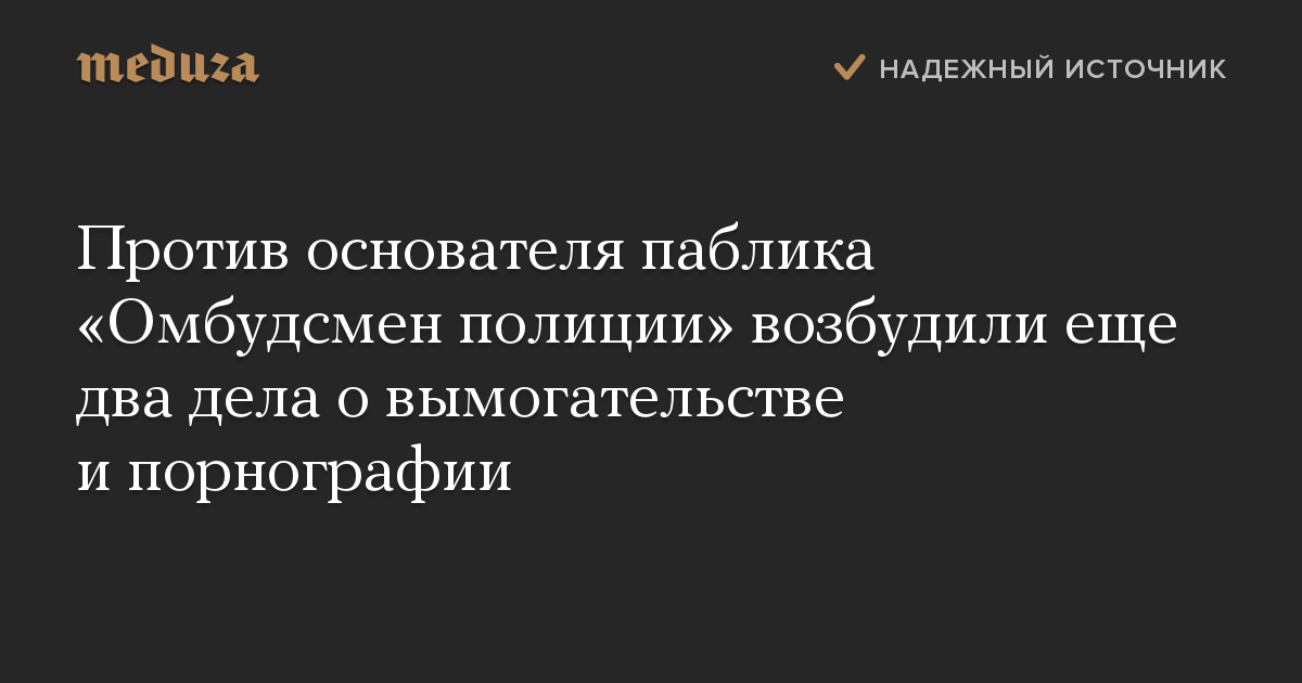 Против основателя паблика «Омбудсмен полиции» возбудили еще два дела о вымогательстве и порнографии