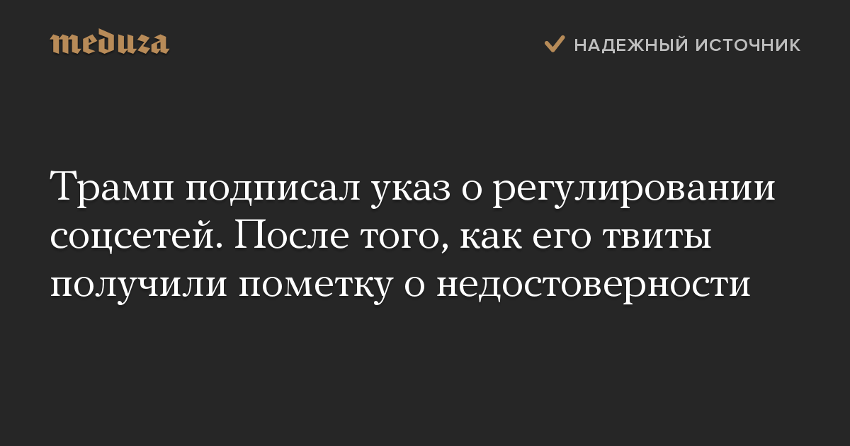 Трамп подписал указ о регулировании соцсетей. После того, как его твиты получили пометку о недостоверности
