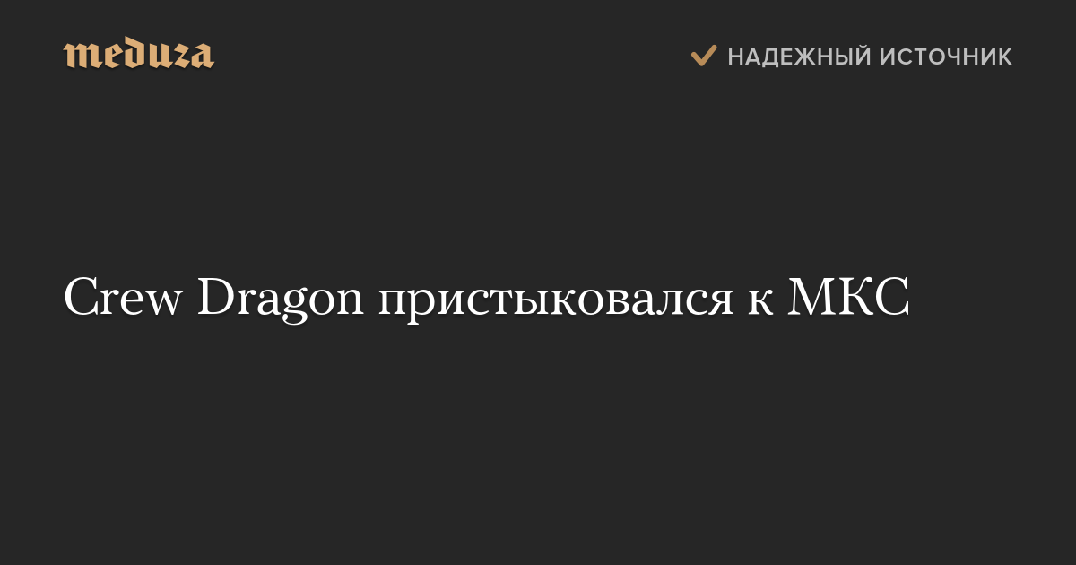 Корабль Crew Dragon с астронавтами Дугласом Херли и Робертом Бенкеном на борту совершил успешную автоматическую стыковку с Международной космической станцией. Прямая трансляция ведется на ютьюб-канале SpaceX.