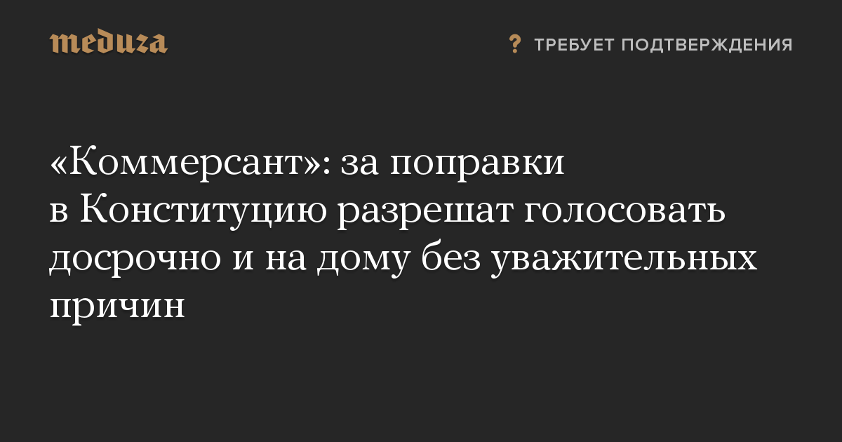 «Коммерсант»: за поправки в Конституцию разрешат голосовать досрочно и на дому без уважительных причин