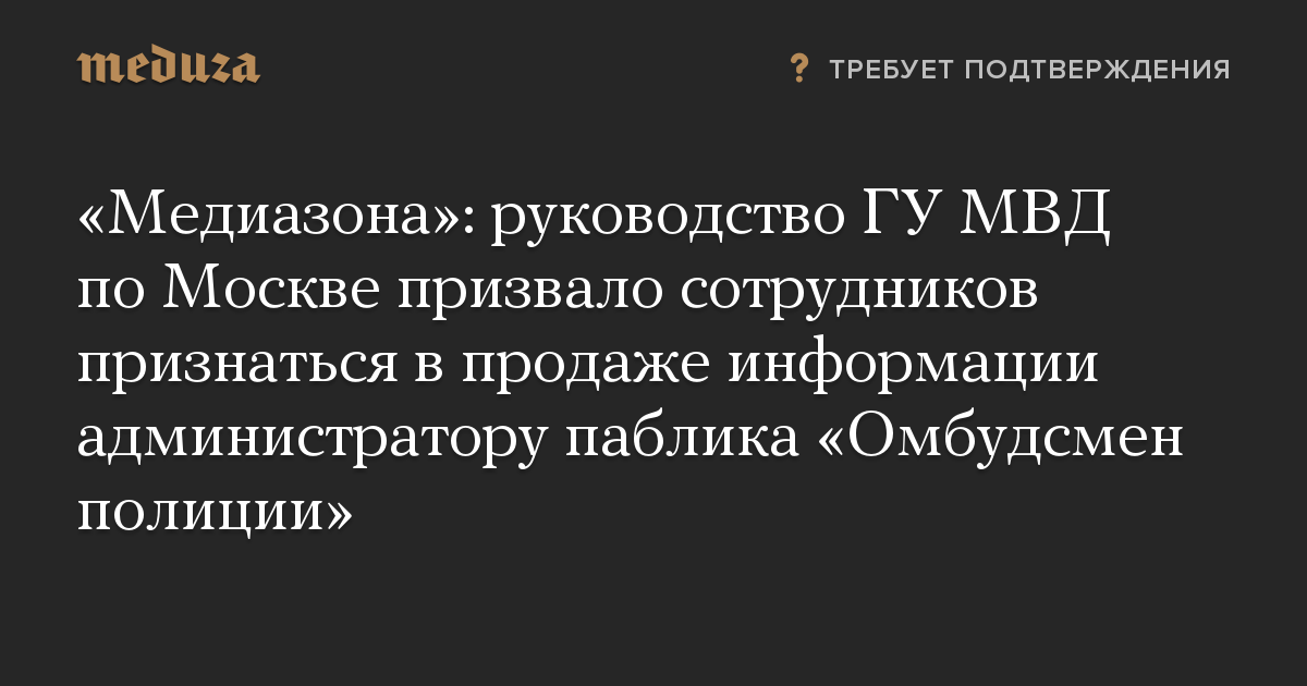 «Медиазона»: руководство ГУ МВД по Москве призвало сотрудников признаться в продаже информации администратору паблика «Омбудсмен полиции»