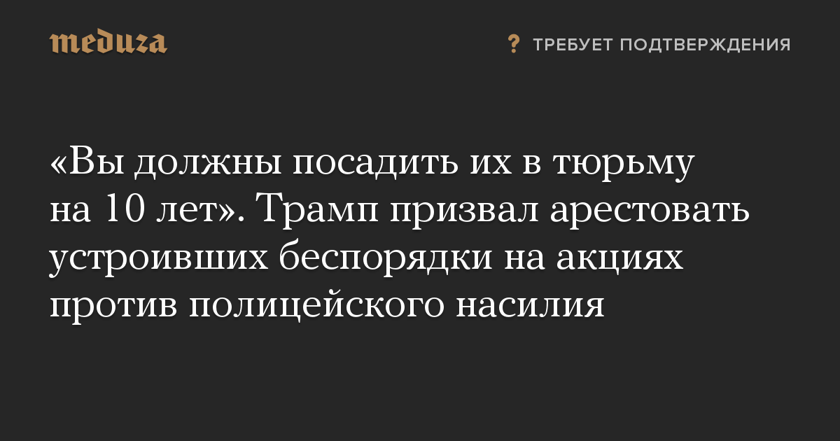 «Вы должны посадить их в тюрьму на 10 лет». Трамп призвал арестовать устроивших беспорядки на акциях против полицейского насилия