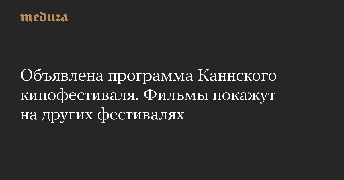 Объявлена программа Каннского кинофестиваля. Фильмы покажут на других фестивалях
