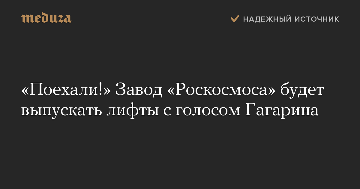 «Поехали!» Завод «Роскосмоса» будет выпускать лифты с голосом Гагарина