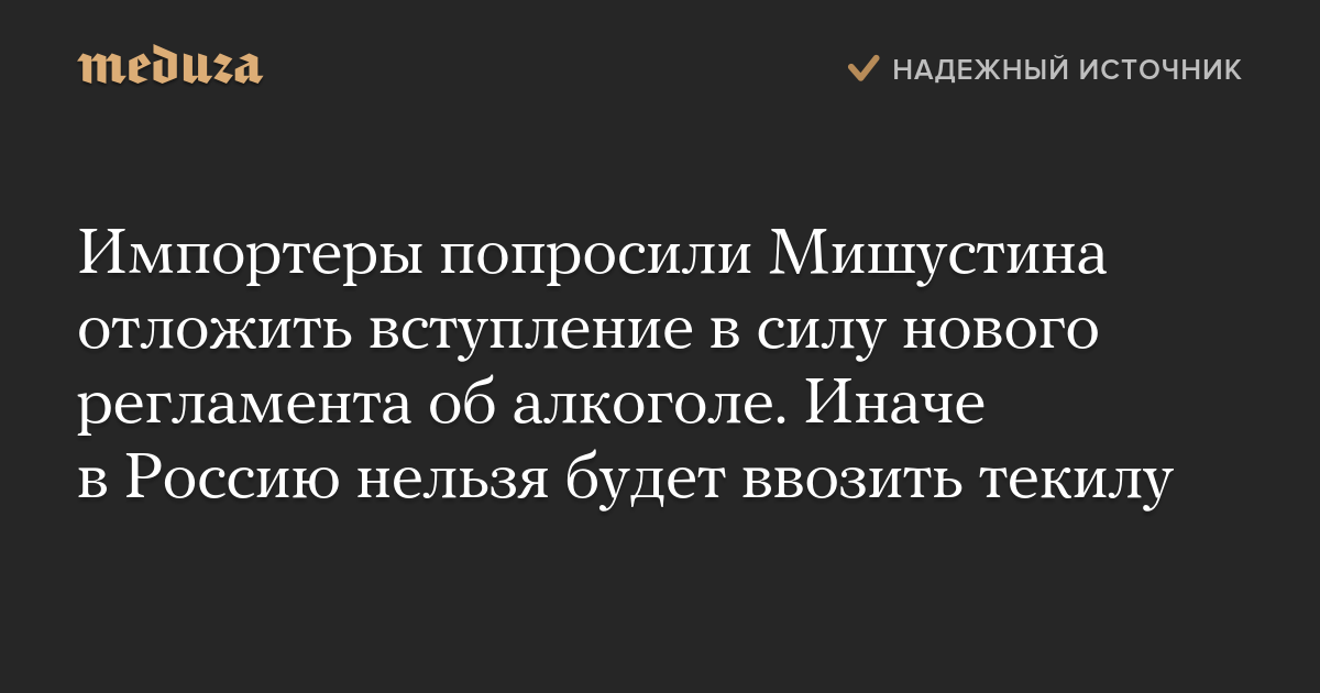 Импортеры крепкого алкоголя, в частности, обратили внимание премьер-министра на то, что текила не подпадает ни под одно понятие технического регламента — это может привести к невозможности ввоза текилы в Россию.
