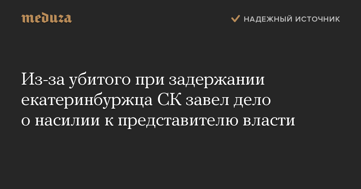 Из-за убитого при задержании екатеринбуржца СК завел дело о насилии к представителю власти