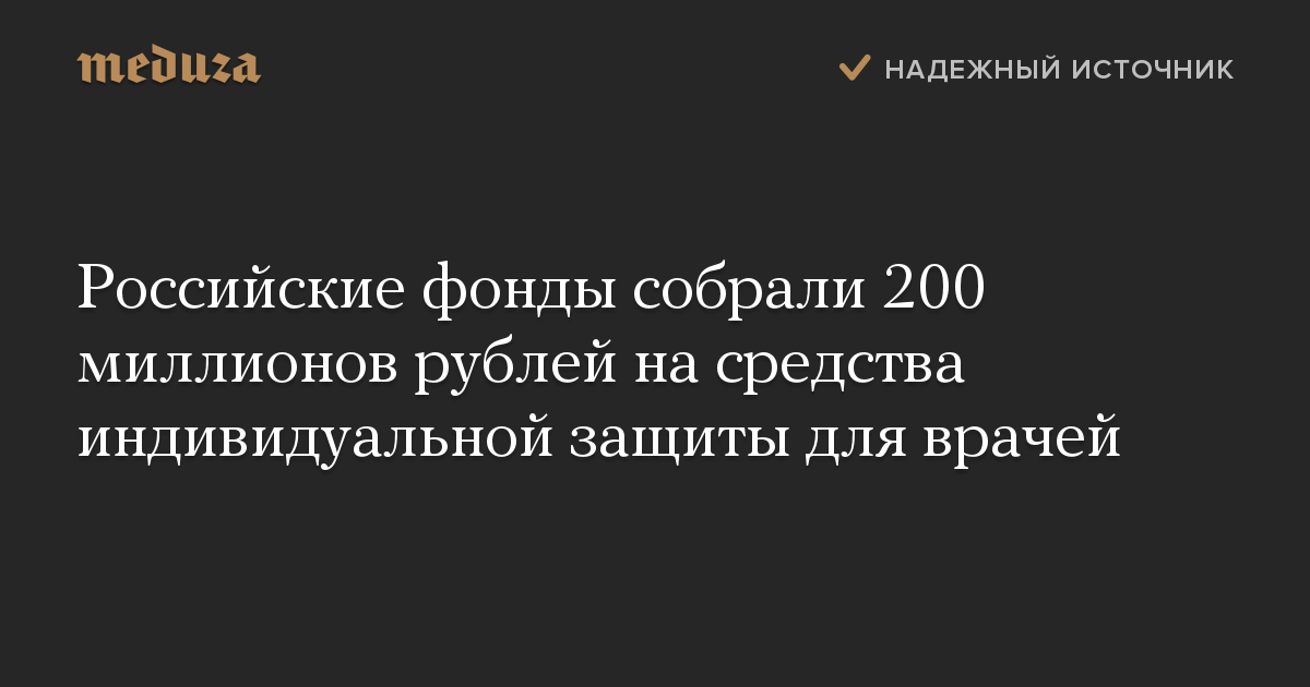 Российские фонды собрали 200 миллионов рублей на средства индивидуальной защиты для врачей