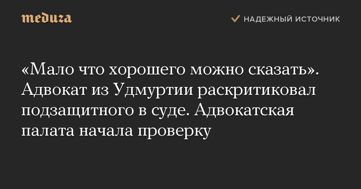 «Мало что хорошего можно сказать». Адвокат из Удмуртии раскритиковал подзащитного в суде. Адвокатская палата начала проверку