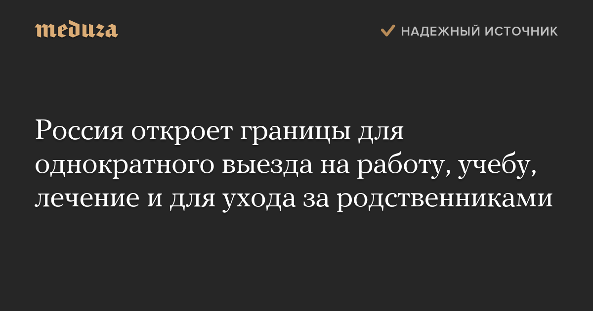 Россия откроет границы для однократного выезда на работу, учебу, лечение и для ухода за родственниками