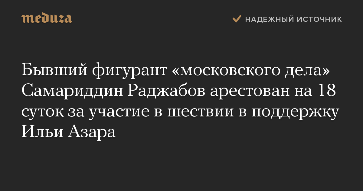 Бывший фигурант «московского дела» Самариддин Раджабов арестован на 18 суток за участие в шествии в поддержку Ильи Азара