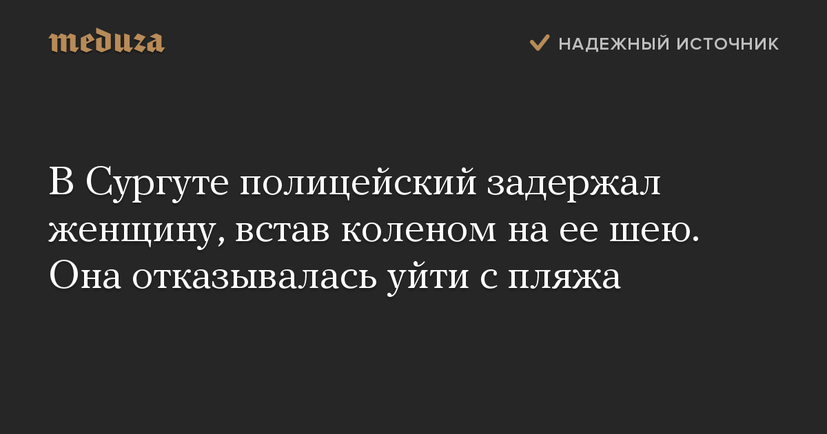 В Сургуте полицейский задержал женщину, встав коленом на ее шею. Она отказывалась уйти с пляжа