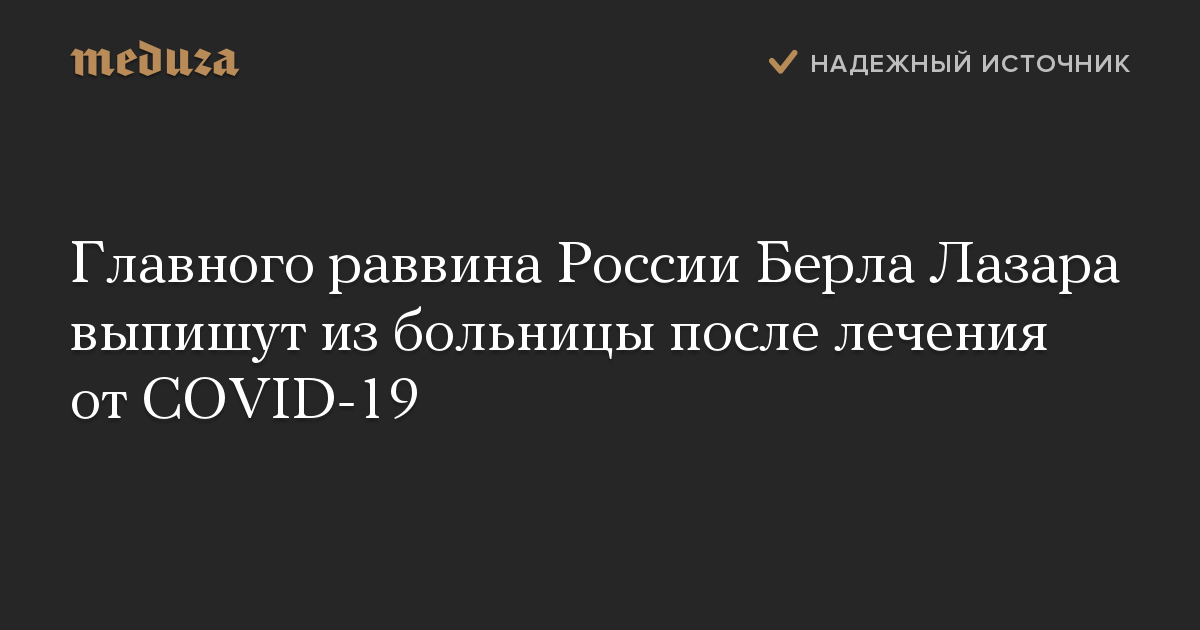 Главного раввина России Берла Лазара выпишут из больницы после лечения от COVID-19