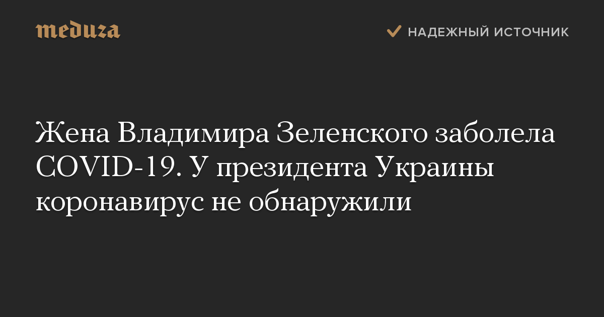 Жена Владимира Зеленского заболела COVID-19. У президента Украины коронавирус не обнаружили