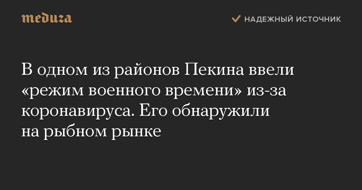В одном из районов Пекина ввели «режим военного времени» из-за коронавируса. Его обнаружили на рыбном рынке