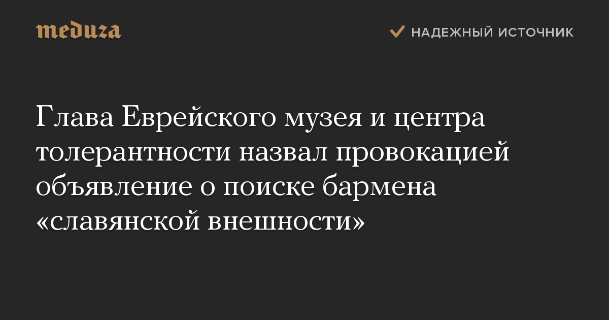 Глава Еврейского музея и центра толерантности назвал провокацией объявление о поиске бармена «славянской внешности»