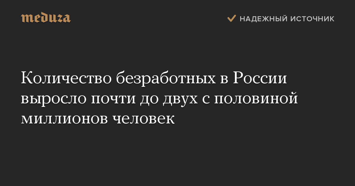 Количество безработных в России выросло почти до двух с половиной миллионов человек
