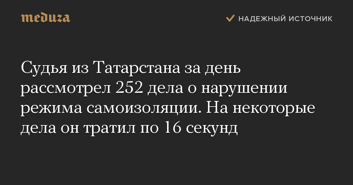 Судья из Татарстана за день рассмотрел 252 дела о нарушении режима самоизоляции. На некоторые дела он тратил по 16 секунд