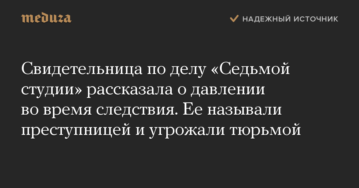 Свидетельница по делу «Седьмой студии» рассказала о давлении во время следствия. Ее называли преступницей и угрожали тюрьмой