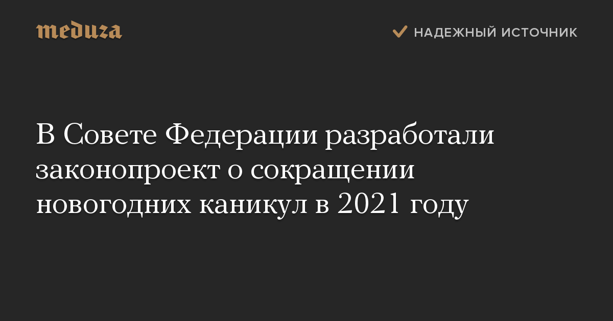 В Совете Федерации разработали законопроект о сокращении новогодних каникул в 2021 году