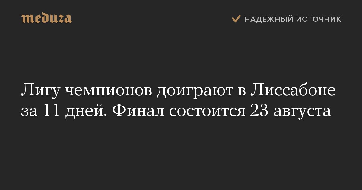 Лигу чемпионов доиграют в Лиссабоне за 11 дней. Финал состоится 23 августа