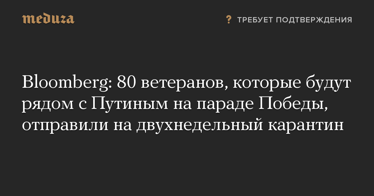 По словам собеседников Bloomberg, карантин призван снизить риск заражения коронавирусом как для Путина, так и для самих ветеранов.