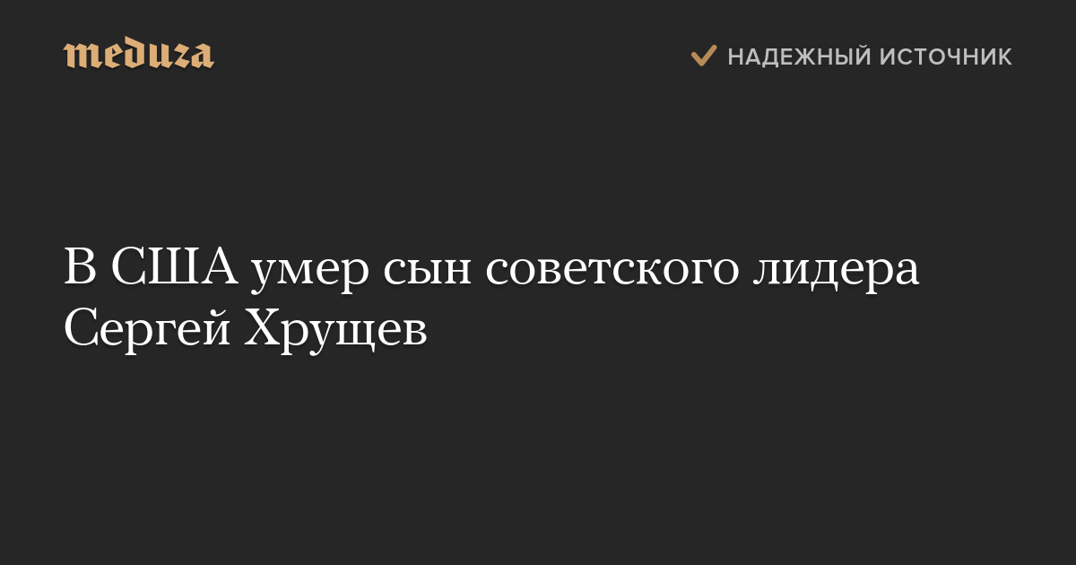 В США на 85-м году жизни умер сын бывшего первого секретаря ЦК КПСС Никиты Хрущева, доктор технических наук Сергей Хрущев.