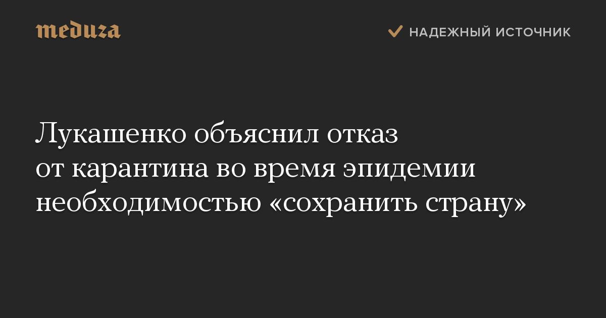 Лукашенко объяснил отказ от карантина во время эпидемии необходимостью «сохранить страну»