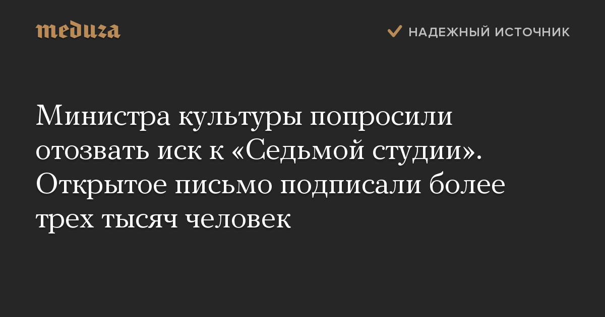 Министра культуры попросили отозвать иск к «Седьмой студии». Открытое письмо подписали более трех тысяч человек