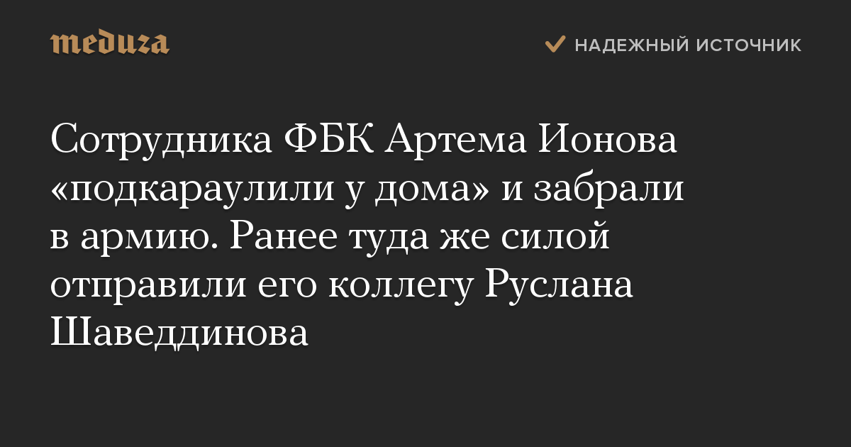 Сотрудника ФБК Артема Ионова «подкараулили у дома» и забрали в армию. Ранее туда же силой отправили его коллегу Руслана Шаведдинова