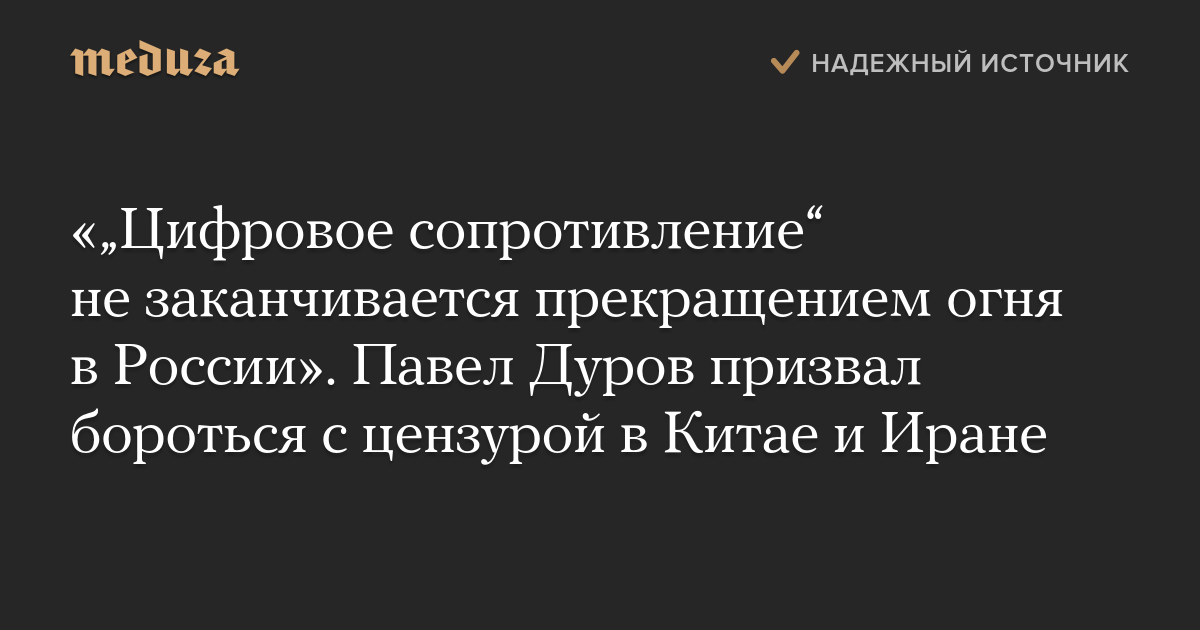 «„Цифровое сопротивление“ не заканчивается прекращением огня в России». Павел Дуров призвал бороться с цензурой в Китае и Иране