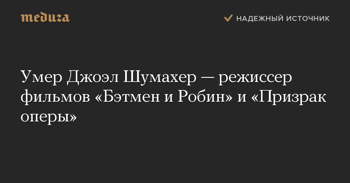 Умер Джоэл Шумахер — режиссер фильмов «Бэтмен и Робин» и «Призрак оперы»