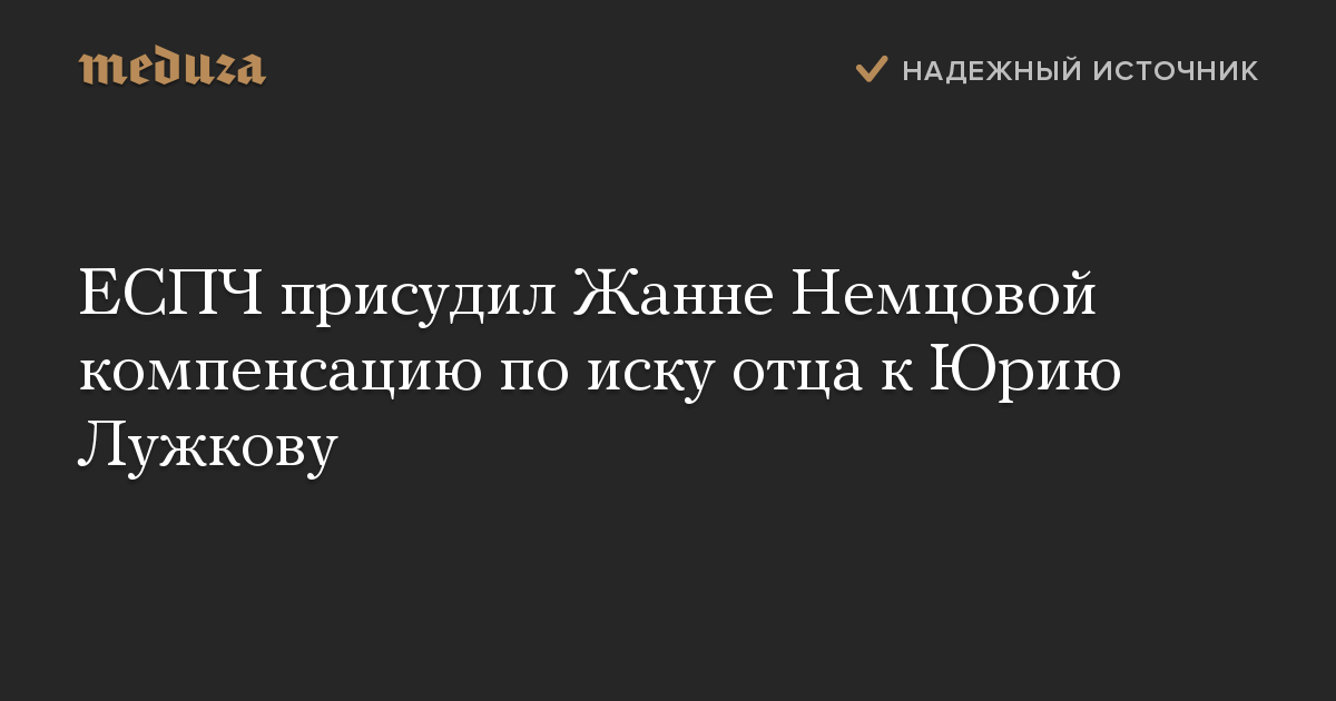 ЕСПЧ присудил Жанне Немцовой компенсацию по иску отца к Юрию Лужкову