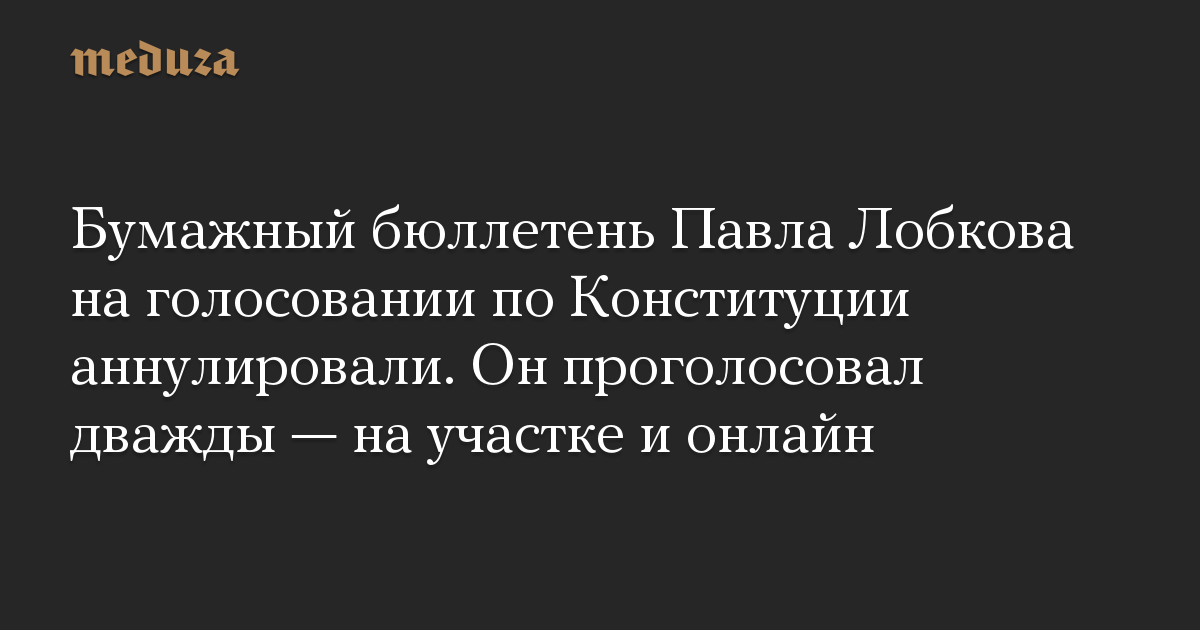 Бумажный бюллетень журналиста Павла Лобкова аннулировали, в голосовании по поправкам в Конституцию учли только онлайн-голос.