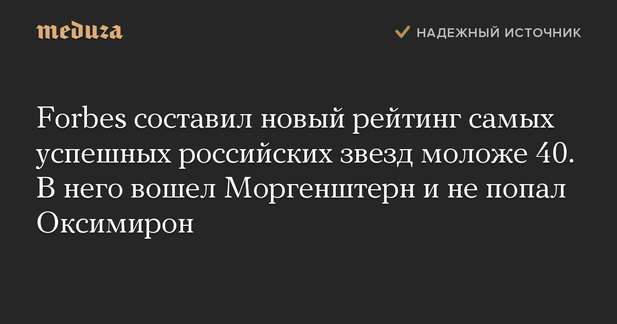 Forbes составил новый рейтинг самых успешных российских звезд моложе 40. В него вошел Моргенштерн и не попал Оксимирон