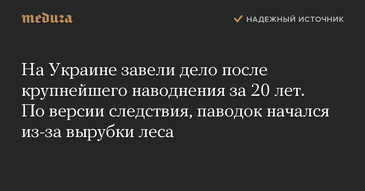 На Украине завели дело после крупнейшего наводнения за 20 лет. По версии следствия, паводок начался из-за вырубки леса