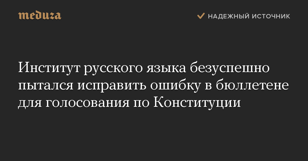 Институт русского языка имени Виноградова безуспешно пытался исправить грамматическую ошибку в бюллетене для голосования по поправкам к Конституции. Об этом в эфире «Эха Москвы» рассказала ведущий научный сотрудник института Ольга Северская, передает Znak.