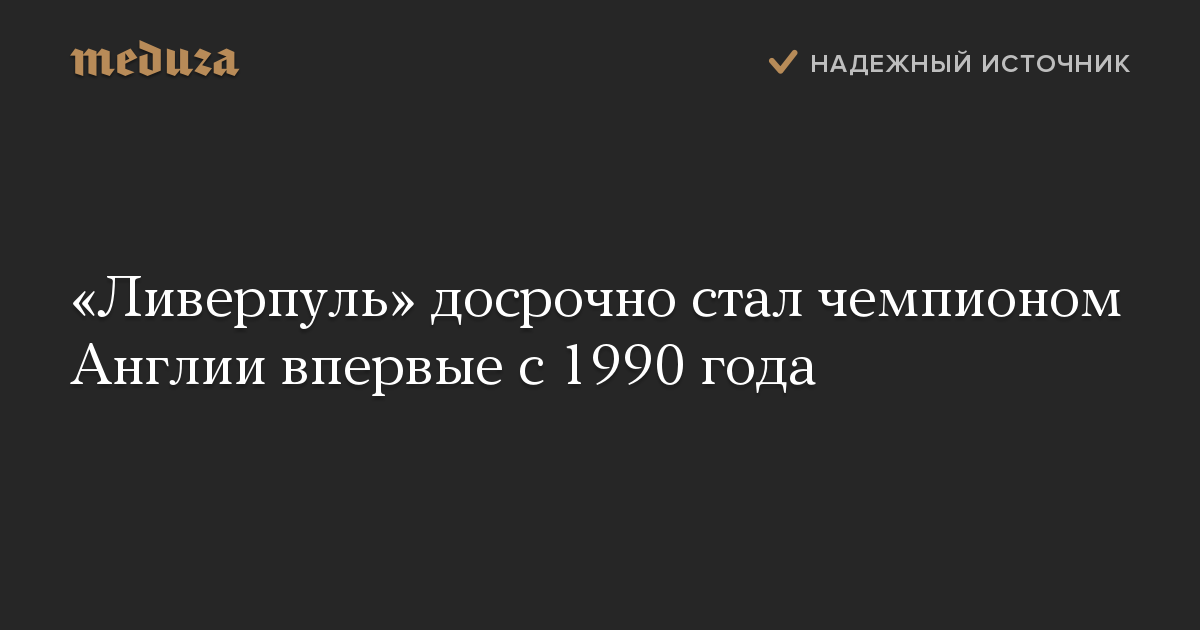 «Ливерпуль» стал чемпионом Англии впервые за 30 лет. В последний раз клуб завоевывал титул в 1990 году, за два года до учреждения Премьер-лиги, отмечает Sports.ru.