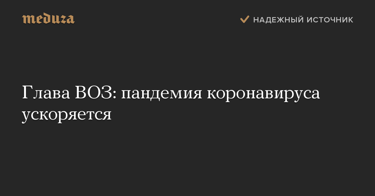 Глава ВОЗ: пандемия коронавируса ускоряется