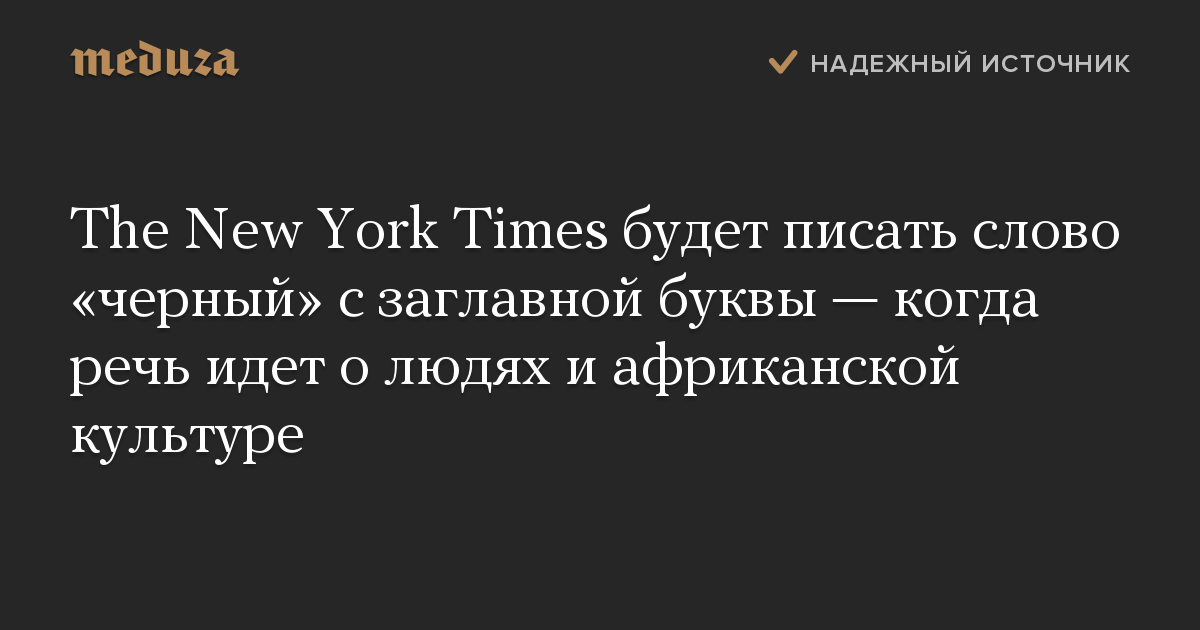 The New York Times будет писать слово «черный» с заглавной буквы — когда речь идет о людях и африканской культуре